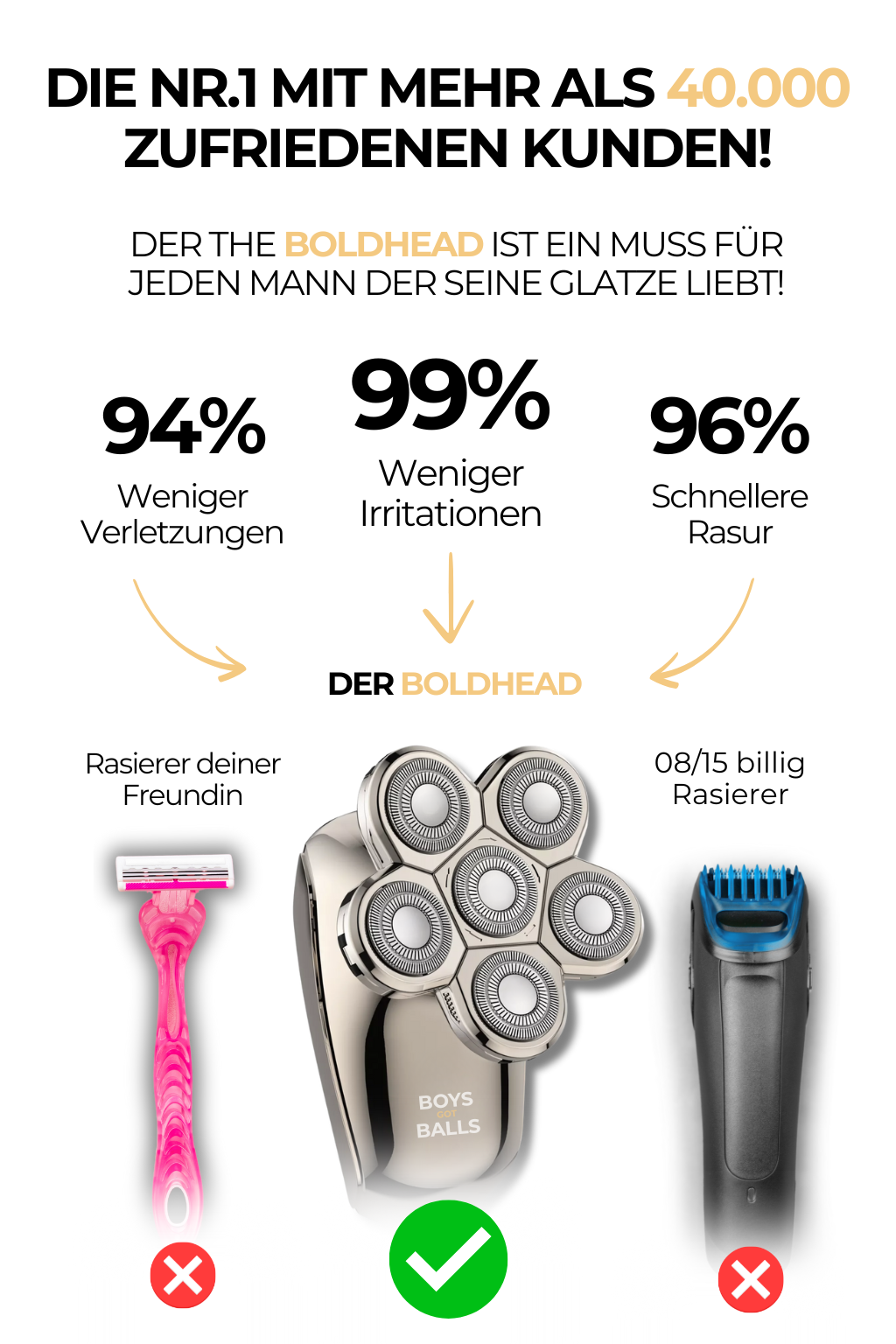 Wenn der BoldHead nicht die präzise, sanfte und hautschonende Rasur liefert, die du erwartest, bekommst du dein Geld zurück – ohne Wenn und Aber!