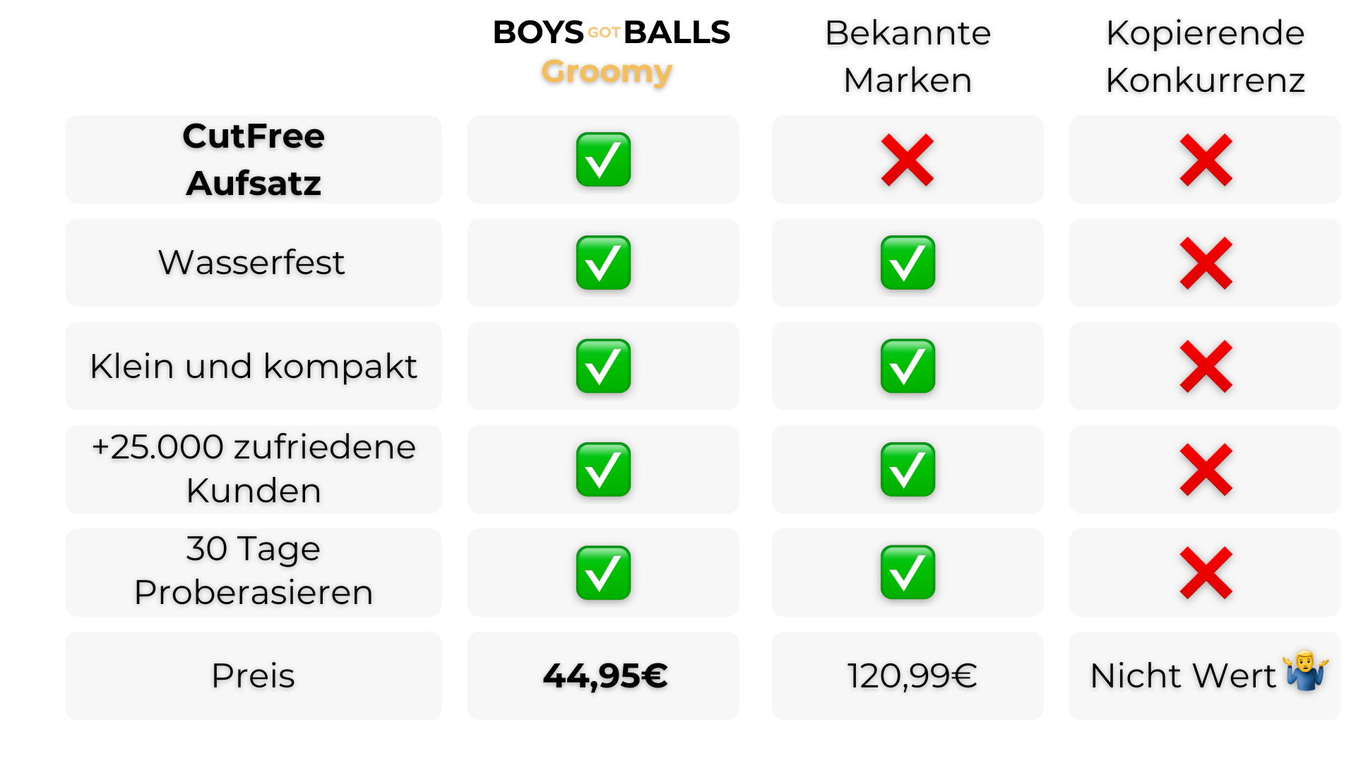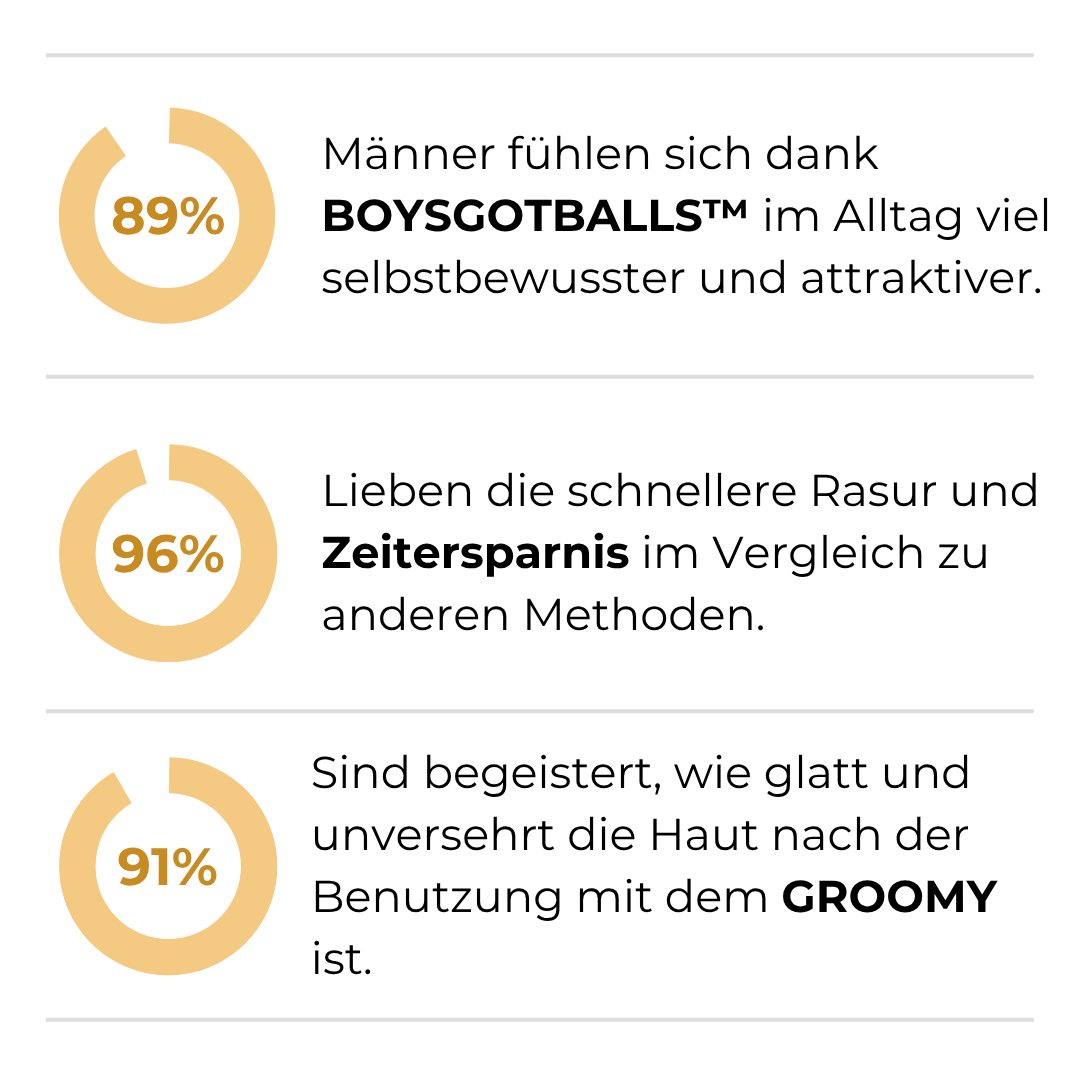 Bei BoysGotBalls™ sind wir davon überzeugt, dass wahre Männlichkeit in Selbstvertrauen und Selbstliebe liegt. Unser Groomy soll nicht nur äußerliche Veränderungen bewirken, sondern auch das innere Strahlen jedes Mannes hervorheben.